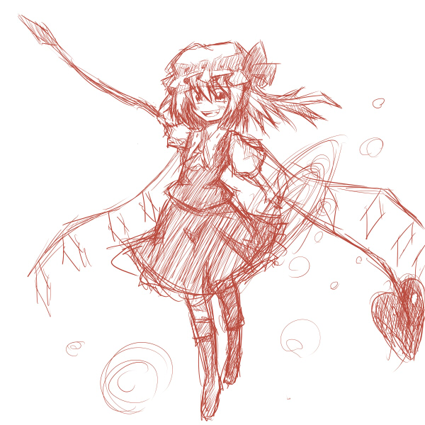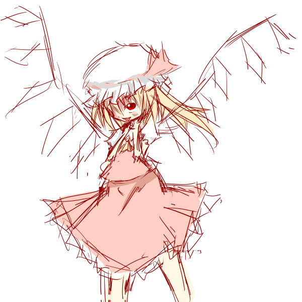 前回ブログに上げたレミリアとまったくもって同じ構図で絵を描いてた事に気づく昨今ですがいかがお過ごしでしょうか。